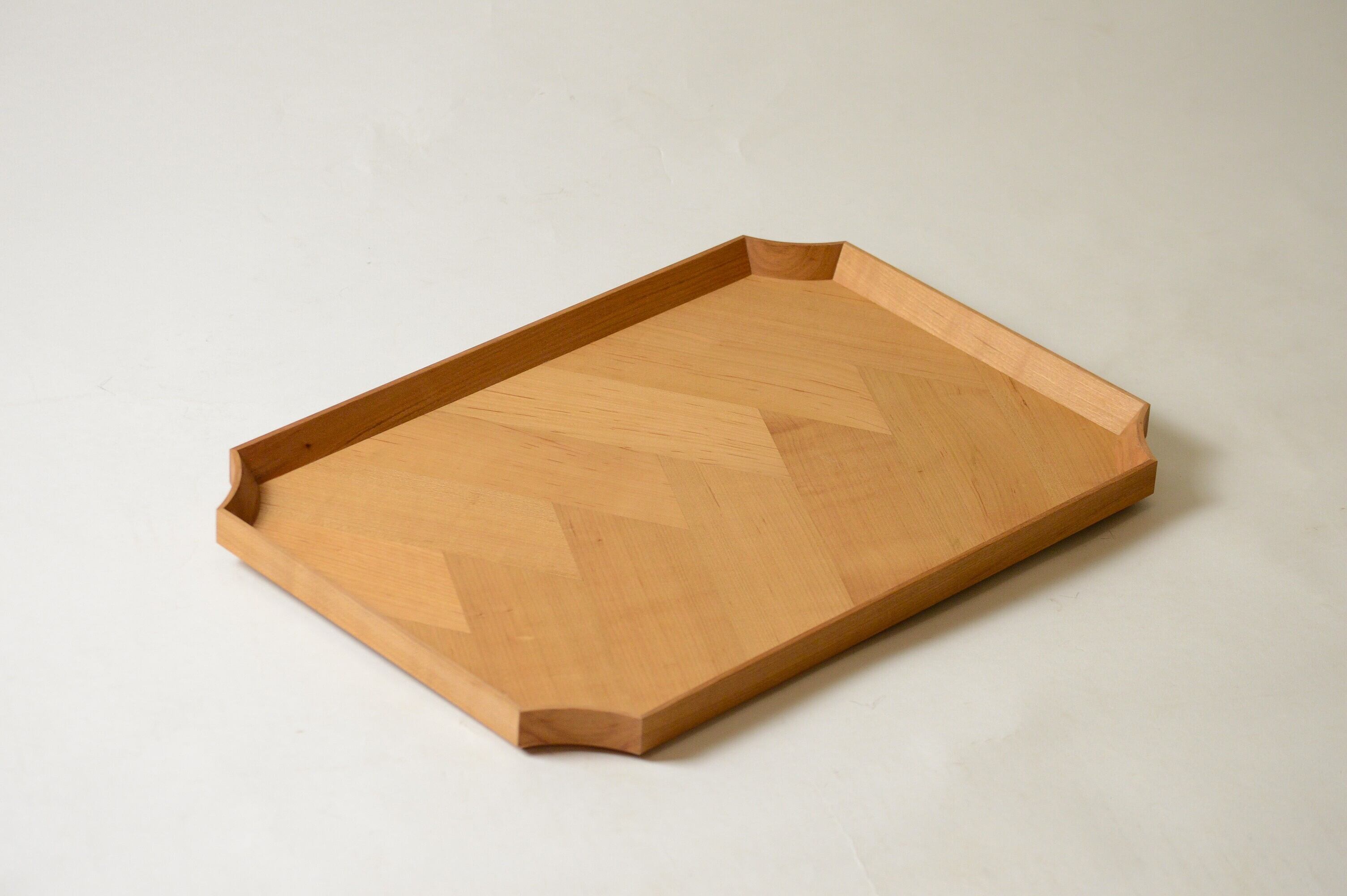ヘリンボーンの隅切御盆【大】 ヤマザクラ